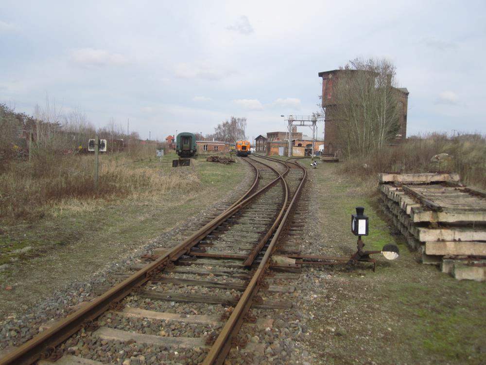 This picture shows the part at the back of the museum's trackwork. The water tower can be seen on the right behind the birch trees; in the middle, the sanding plant can be seen and on the left there are further trees and bushes. That is where until the 1980s the main coal storage in the depot was located. It had a capacity of around 3,500 tonnes.