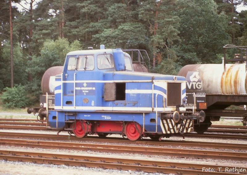 This locomotive is a diesel shunting loco built by the company Linke-Hoffmann-Busch, Salzgitter, originally delivered to the Salzgitter-Chemie GmbH. The company used to operate a chemicals processing factory adjacent to the station of Melbeck-Embsen, near L