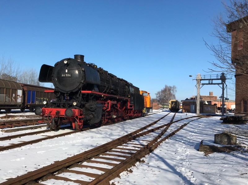 Unfortunately, the idyll had to be disturbed a bit today, because some shunting was going on. Our steam locomotive 44 and the diesel locomotive V60 were moved to the side.