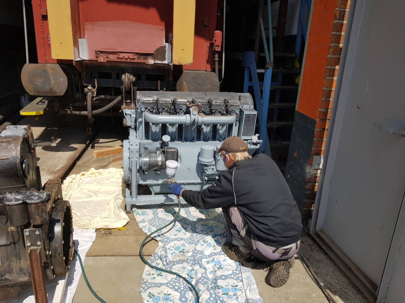 Paint also ran through the spray nozzles of our painter, who painted two diesel engines, one of which will soon be put on display.