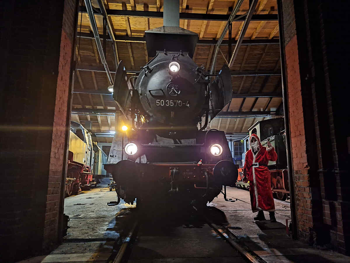 Now it's time for a little Christmas peace and quiet in the museum. Our guest locomotive 86 1333 has arrived safely back in Wittenberge from its last run on the Heidekrautbahn near Berlin and will now spend the next few weeks and months under cover with us.
