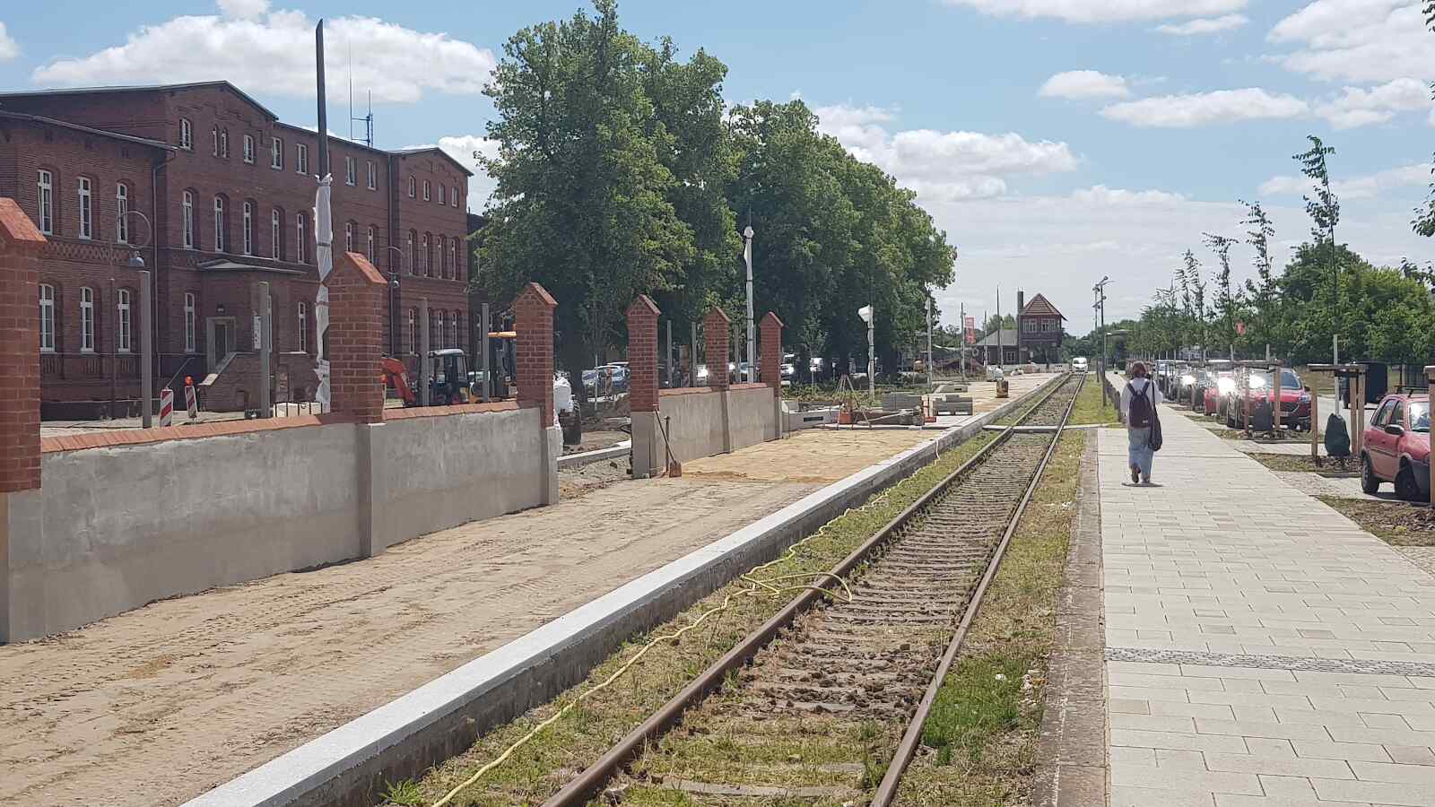 As part of the redesign of the green spaces and in preparation for the State Garden Show, which will be organised in Wittenberge in the summer of 2027, the platform next to this track has been redesigned. In future, it will be integrated into the green space that is being created along the street "Am Bahnhof". We are very pleased about this, as it will also make our guests' journey from the station more pleasant when they arrive by train from early summer 2026.