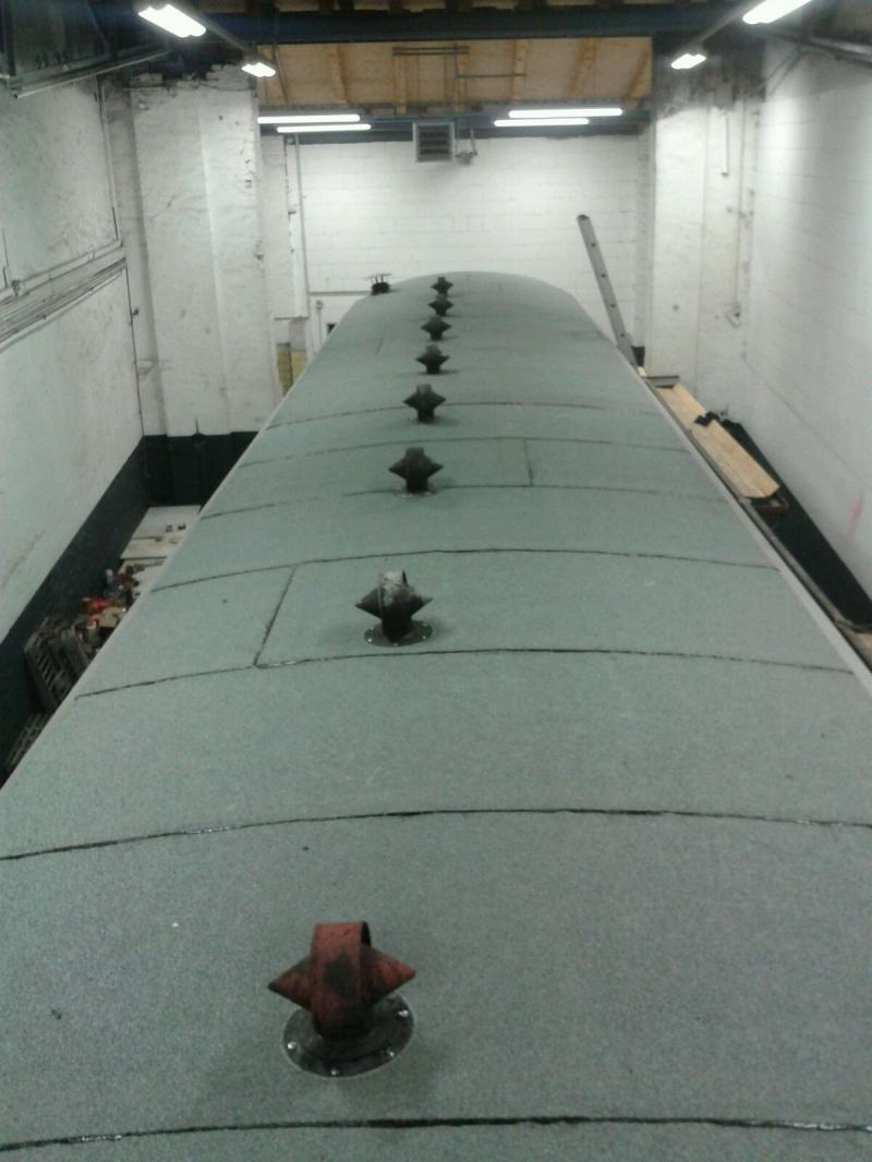 On 20.2.2016 we repaired the roof of trailer VB 197 805. In the weeks before, the wooden substructure had been partially renewed. Now we could first apply a new separating layer of roofing felt, then the top layer. Finally, the roof ventilators and the heating stove chimney were replaced. Next, the fan settings were sealed with roofing felt and the edge strips were fastened, which will hold the roofing felt permanently along the roof line. Now at least the roof of the car is in perfect condition again. In addition, we have already been able to replace part of the electrical system for the lighting.