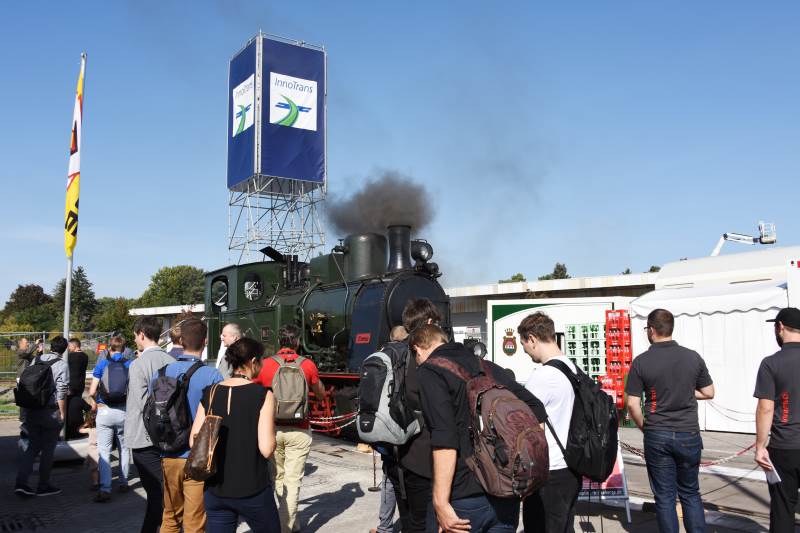 Our steam loco "EMMA" is without any doubt one of the stars of InnoTrans, the largest international exhibition for railway technology. After arrival of the machine without incident at the exhibition grounds, on Monday September 17, 2018, members of the Historischer Lokschuppen Wittenberge prepared her for her duties at InnoTrans. The next day, the exhibition opened its doors for the trade visitors. Countless visitors from all over the world took the once in a lifetime opportunity to take a ride in the cab of a steam locomotive. The loco is always surrounded by a throng of people and the members had their hands full the whole time. On September 22 and 23, the exhibition is open to the general public. On these days too, there is the chance to take a trip in the driver's cab of "EMMA", before she heads for home in Wittenberge next week.