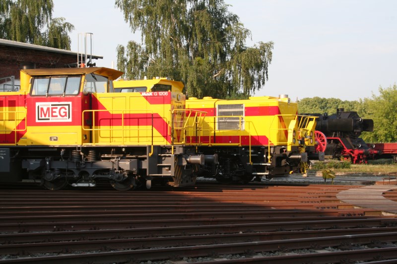 At our event on July 4 and 5, 2015, an Alstom H3 hybrid locomotive and a G1206 diesel-hydraulic mainline locomotive were on display. Both are currently in service with the Mitteldeutsche Eisenbahngesellschaft (MEG).