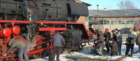 Die wie zu DDR-Zeiten gekleideten Dampflokfreunde legen sich für ihre Besucher, die warm eingepackt der Kälte trotzen, mächtig ins Zeug, arrangieren ihre Loks für gute Einstellungen, beheizen einen Bistrowagen, in dem sich alle Beteiligten immer wieder aufwärmen können und "beleben" die Fotos, in dem sie immer wieder und abwechselnd eine Schubkarre voller Kohlen durch die Szenerie schieben. "Es war ein Supererlebnis", sagt Vorsitzender Burkhard Bohn schmunzelnd.