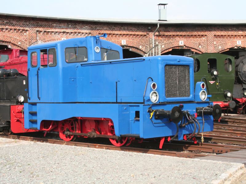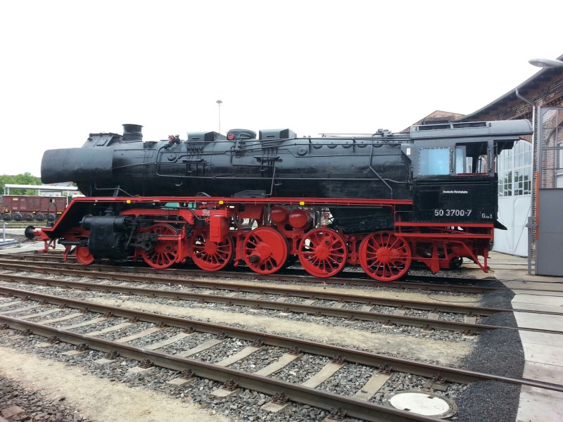 Undoubtedly, the stars of the collection are the four steam locos of class 50.35, for such a long time typical of Wittenberge depot. Apart from these, visitors can also admire the cute little industrial loco Emma and a class 44 heavy freight loco, as well as seven main-line diesels and seven smaller diesel locos The railway enthusiasts also look after a hospital carriage of the Deutsche Reichsbahn, the car-carrier which formed part of the first GDR ministerial train and a number of hand-trolleys. The signal box "Wm", built in 1909, is also part of the railway museum and anyone who wishes to try their hand on the levers can find out just how much physical effort lay behind resetting points and signals in the old days.