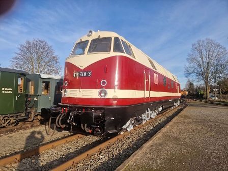 Genau wie die ebenfalls in unserem Museumsbestand befindliche 118 692 ist die 118 748 eine Vertreterin des Traktionswechsels von Dampf- auf Dieselloks bei der Deutschen Reichsbahn Ende der 1960er Jahre. Die "748" war bis 1998 zunächst bei der Deutschen Reichsbahn, später bei der Deutschen Bahn AG in Thüringen stationiert und wurde meist vom Bahnbetriebswerk Erfurt aus eingesetzt. News zum FahrzeugZeitungsartikel zum Fahrzeug | |||||||||||||||||