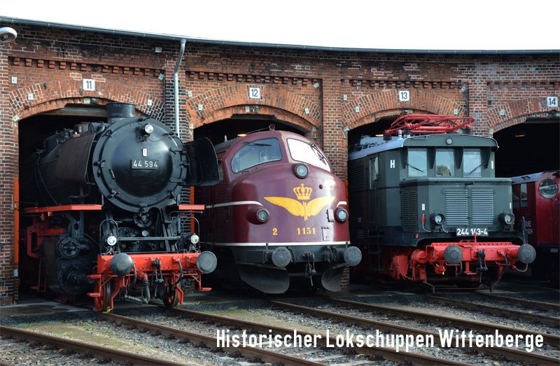 After 1955, she saw the majority of her active service in the Leipzig and Halle region. In 1987 she was transferred to Schwerin where she was used as a shunting locomotive andfor pre-heating passenger trains. After covering a good two million kilometres, she was withdrawn from service at the end of 1991 and the following year was sold to the track construction and repair company H.F. Wiebe, which initially loaned it as an exhibition piece to the railway museum in Weimar. Since 18.09.2015 the locomotive has been on display in Wittenberge. |