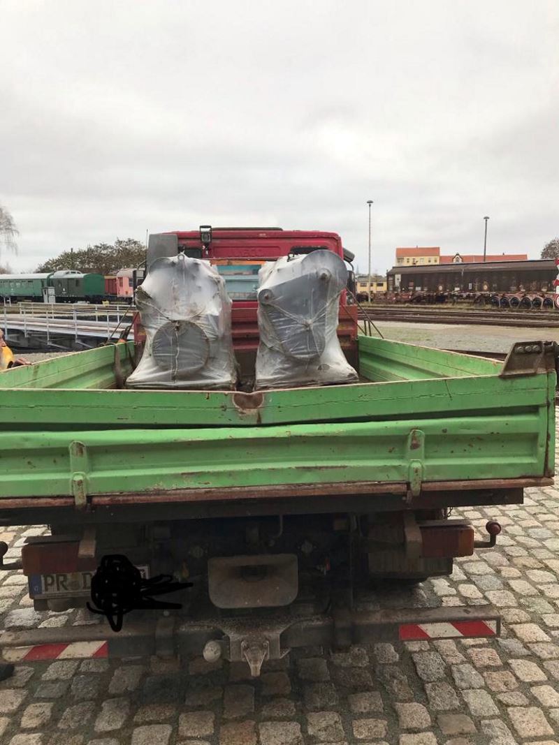 Da das Ersatzteillager nun aufgelöst wurde, suchte die Firma einen Abnehmer für die Motoren. Wir übernahmen sie gerne und konnten sie am 27.11. abholen.