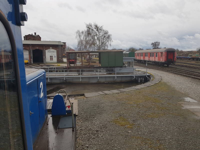 Then our freight wagon, which is currently being refurbished, could get some fresh air. It was turned on the turntable so that the half of the wagon that had not been clad so far could be worked on in the shed.