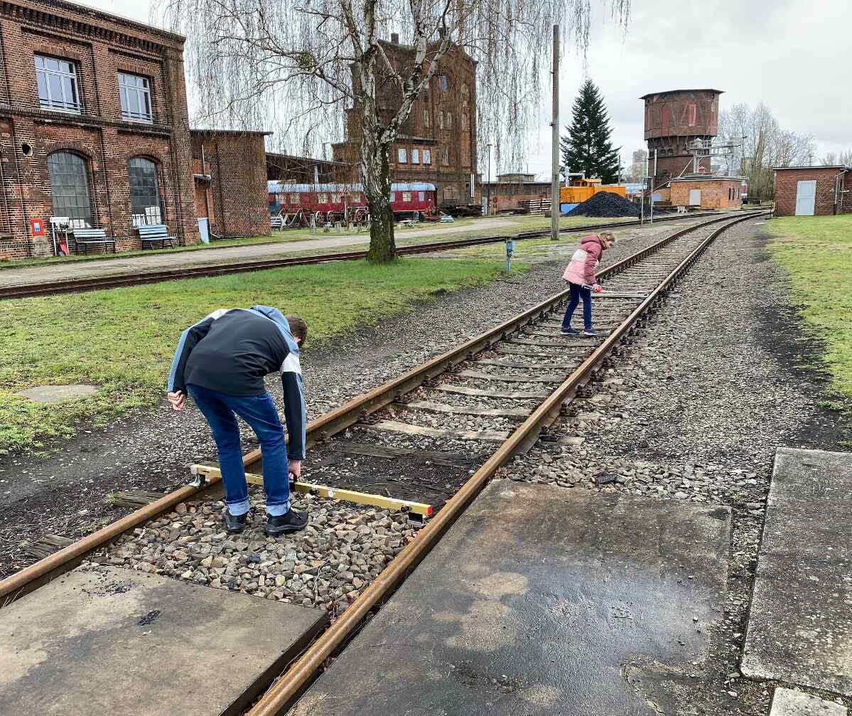 Die Fahrzeuge wurden für den Betrieb vorbereitet, mit Betriebs- und Schmierstoffen ausgestattet und nochmal geputzt. Die Räumlichkeiten wurden gründlich gereinigt, die Außenflächen aufgeräumt und die Rasenflächen gemäht. Schließlich wurden die Gleise vermessen, damit ein sicherer Betrieb im Gelände gewährleistet ist.