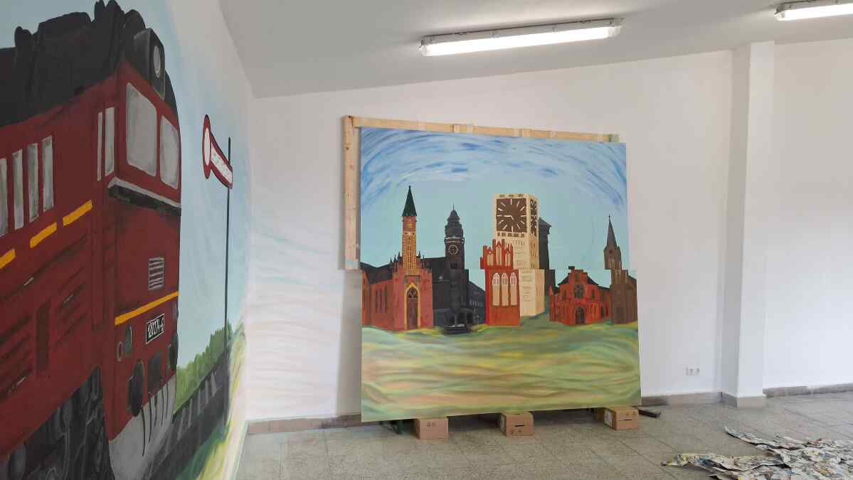 Mit großer Freude betrachten wir die nun fertigen Werke der Schülerinnen und Schüler des Marie-Curie-Gymnasiums aus Wittenberge, die – wir berichteten darüber schon im letzten Newsletter – die Wandgestaltung unseres neuen Ausstellungsraumes im Südgiebel des Lokschuppens übernommen hatten. Euch vielen Dank nochmal, Ihr habt da tolle Sachen gemalt.