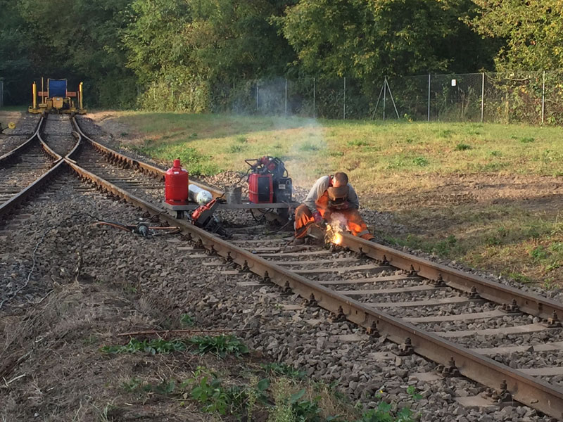 Wir berichteten bereits früher, dass ein Verbindungsgleis zwischen den beiden Teilen der Gleisanlagen des Museums hergestellt werden soll. Im letzten Jahr wurden die dafür notwendigen Schienen und Schwellen besorgt und provisorisch verlegt. Der anspruchsvolle Teil des Unternehmens, das Schweißen, Stopfen und Ausrichten des Gleises erfolgt jetzt. Dazu müssen rund 250 Tonnen Schotter ausgebracht und eingebaut werden, was Profis mit der entsprechenden Ausrüstung für uns übernehmen. Die Arbeiten begannen am 13.9.2016 und werden sich voraussichtlich bis Ende des Monats September hinziehen. Das Gleis soll rechtzeitig zu unserer nächsten Veranstaltung am 8. und 9. Oktober fertig sein.